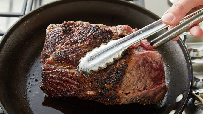 Heat 12-inch skillet over medium-high heat until hot. Add beef roast; cook 6 to 8 minutes, turning once, until browned on both sides.
